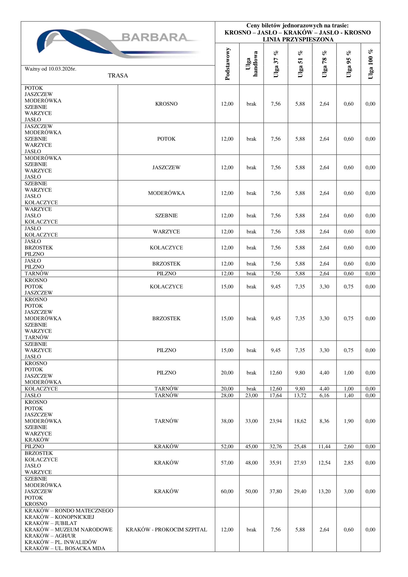 Cennik ważny od 10.03.2026r.